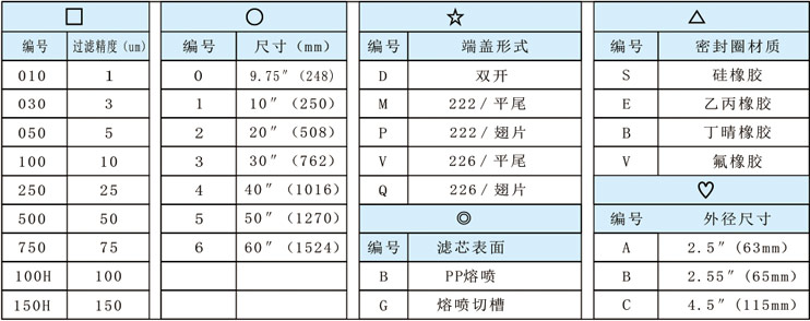 滤芯订购信息