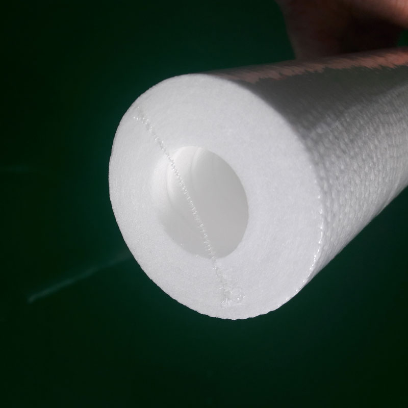 PP熔喷滤芯由聚丙超细纤维热喷缠结而制成,无任何化学粘合剂,纤维随机器转动自由粘合形成三维微孔结构。外疏内密渐变孔径分布的结构,具有压差小,纳污力强,过滤效率高,使用寿命长的特点,能有效去除流体中的悬浮物、颗粒、铁锈等杂质。
